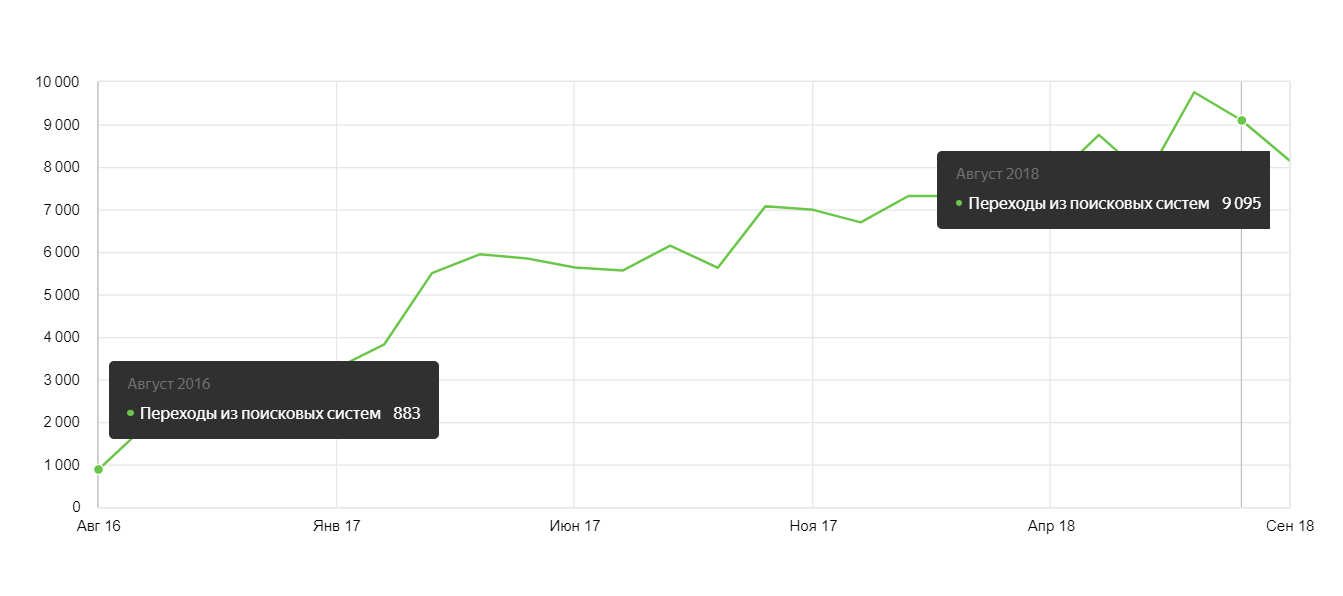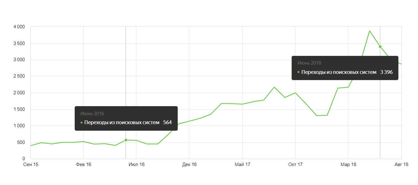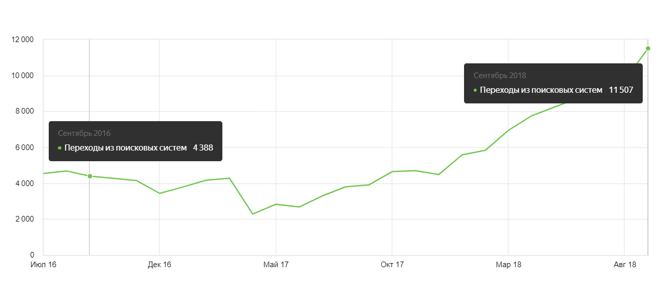 Рост посещаемости сайта из Яндекса и Гугла за 2 года в 7 раз