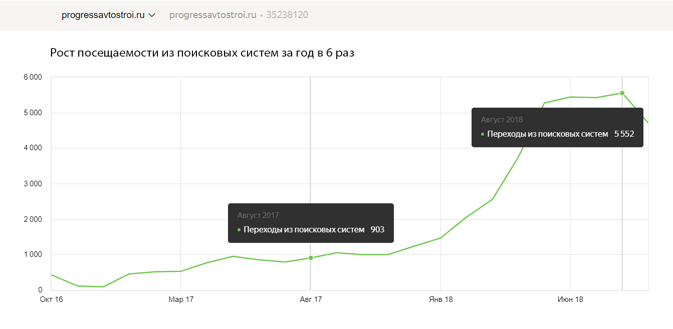Рост посещаемости сайта из Яндекса и Гугла за 1 год в 6 раз
